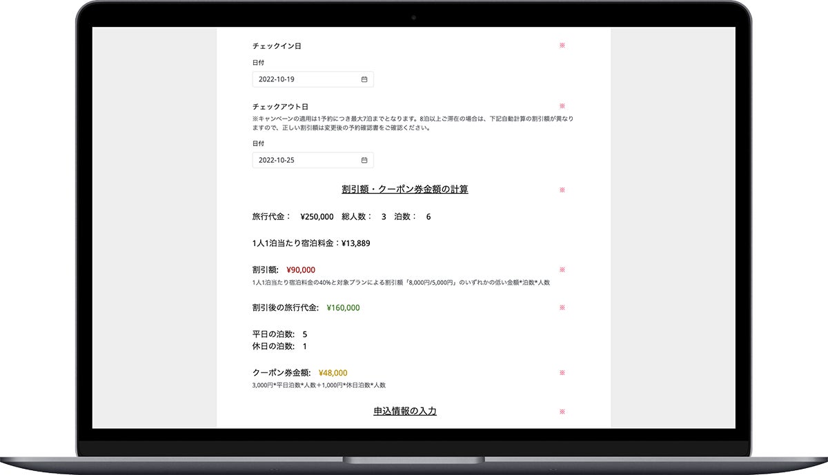 - 宿泊者の申込情報入力